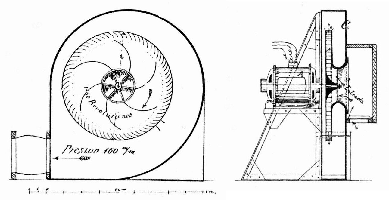 Schleudergebläse. Quelle: Albert Merklin, Organología. Madrid 1924, S. 124 (überarbeitet)